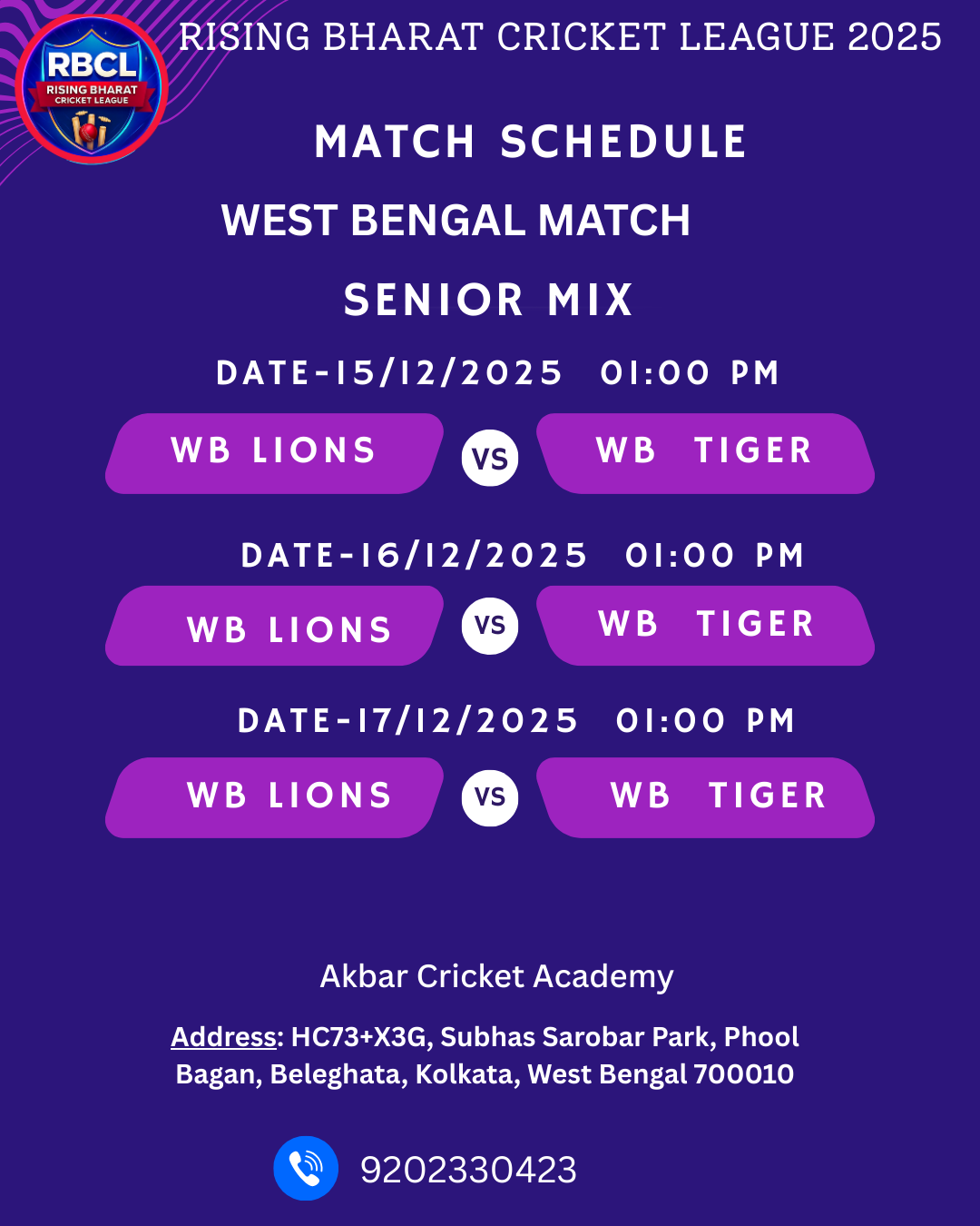 Welcome to the Rising Bharat Cricket League, managed by Shivay Sports Management Pvt Ltd, a registered entity with the Ministry of Company Affairs. Our league is not just a sporting event; it's a celebration of the game's spirit, uniting communities through thrilling cricket competitions. Committed to fair play and sportsmanship, we provide a platform for both aspiring and seasoned cricketers.
