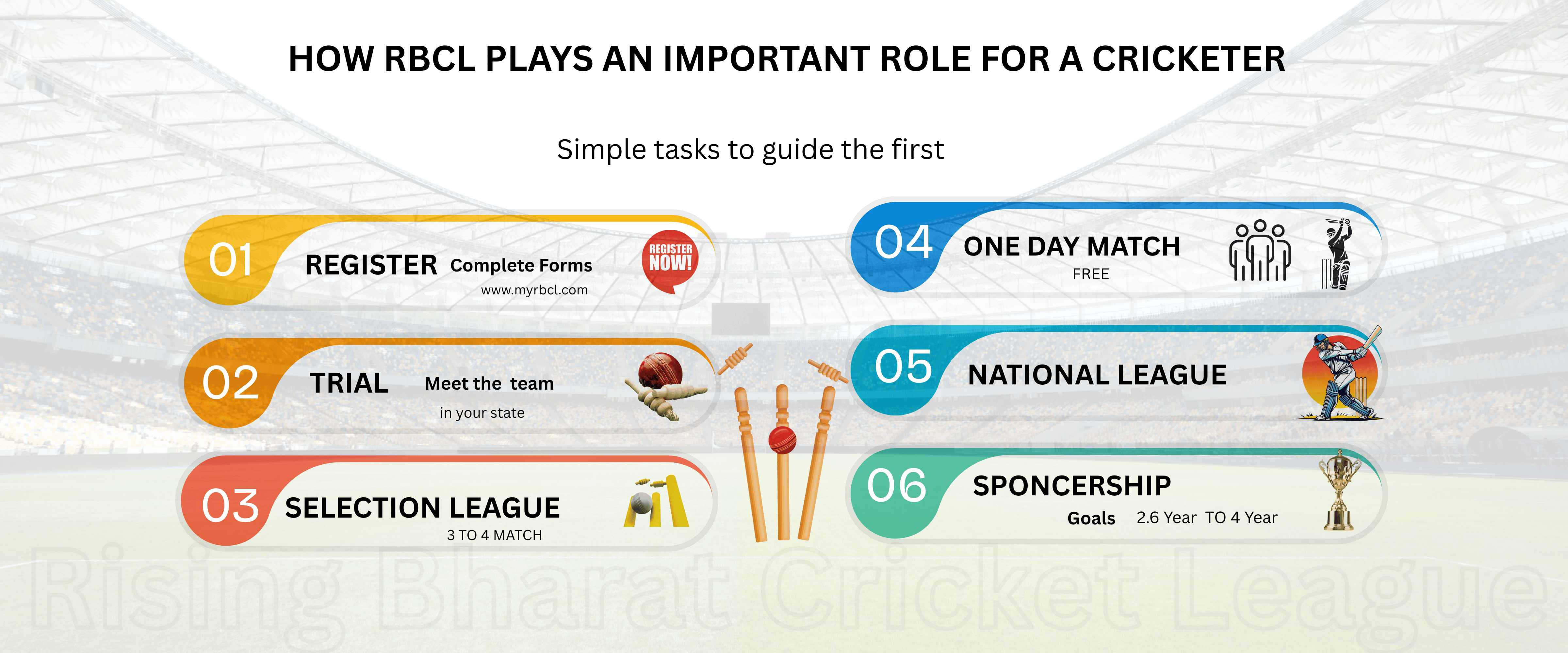 Welcome to the Rising Bharat Cricket League, managed by Shivay Sports Management Pvt Ltd, a registered entity with the Ministry of Company Affairs. Our league is not just a sporting event; it's a celebration of the game's spirit, uniting communities through thrilling cricket competitions. Committed to fair play and sportsmanship, we provide a platform for both aspiring and seasoned cricketers.